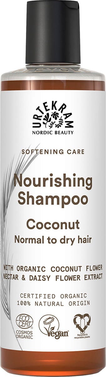 This wonderfully fragrant Coconut Shampoo by URTEKRAM cleanses normal and dry hair types with mild coconut tensides, organic coconut nectar, organic brown algae and daisy extracts that deliver intensive nourishment.
