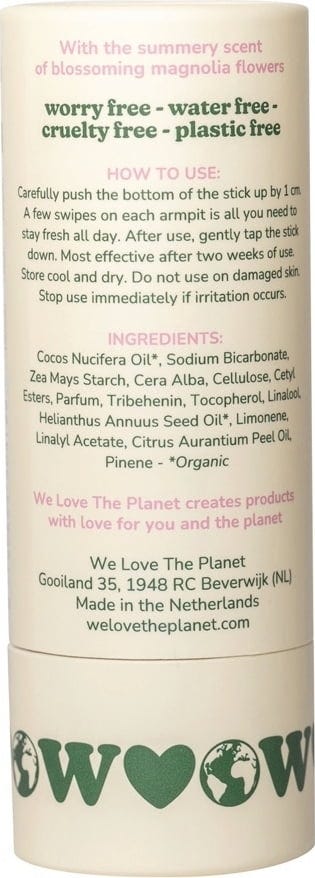 The Chic Magnolia deodorant caresses the senses with its floral, feminine magnolia scent that evokes the feeling of spring. The natural formula with bicarbonate of soda, corn starch, and nourishing oils helps protect against unpleasant body odour while also caring for the skin.