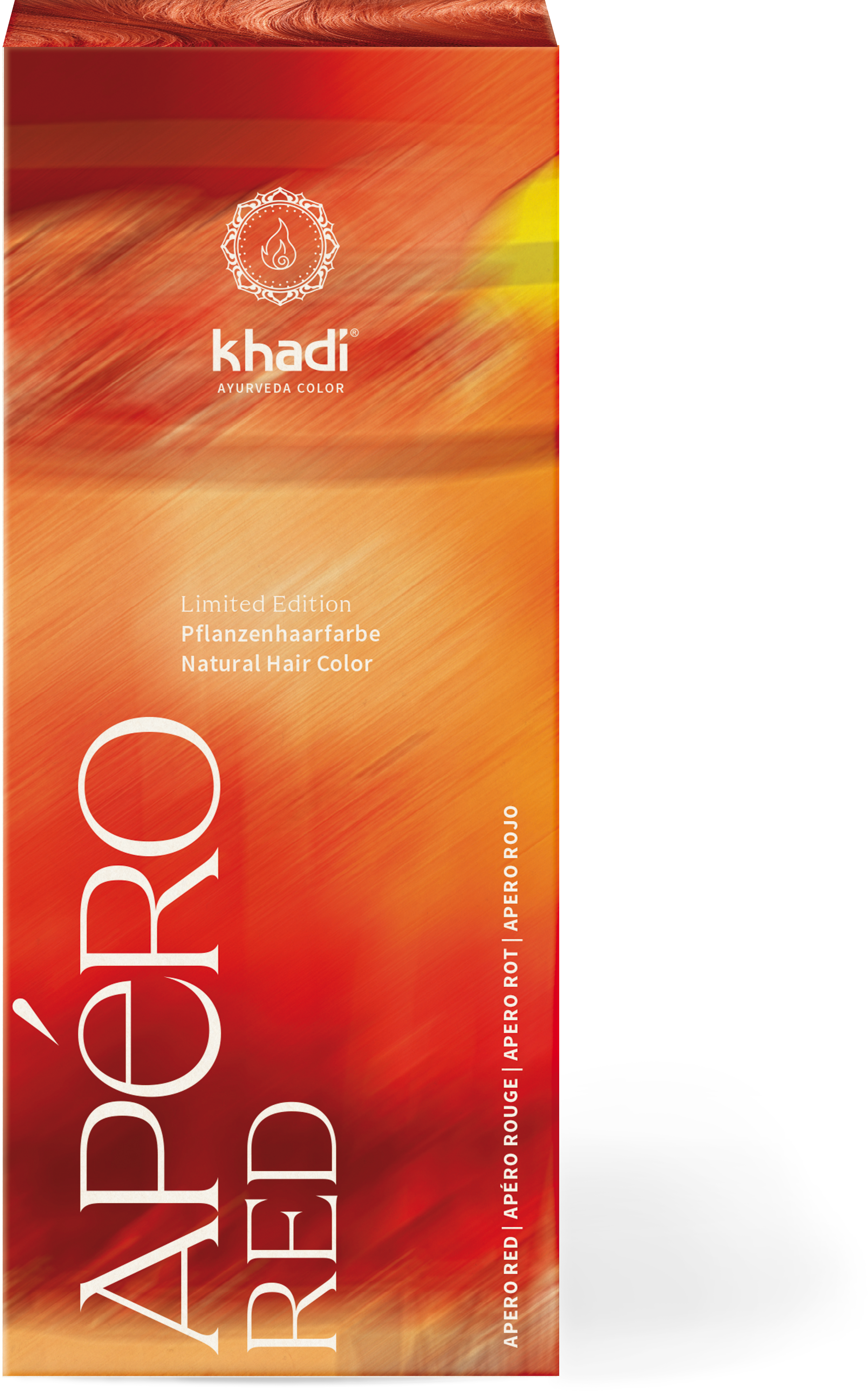 ApéroRed est comme le scintillement rouge et or d'un apéritif au coucher du soleil. Il évoque le tintement des verres, le brouhaha joyeux et la chaleur du soleil - c'est l'hommage de khadi à la dolce vita italienne et offre une alternance fascinante de rouges profonds, amoureux du soleil, et de nuances de rouge clair élégantes et plus froides. Selon la couleur initiale des cheveux, la transformation commence en 48 heures et ApéroRed déploie une profondeur enchanteresse. La chaleur lumineuse fait place à un rouge plus froid et plus élégant, qui scintille doucement et de manière raffinée - comme si le ciel du soir s'était transformé d'un orange ardent en un rouge carmin au clair de lune.