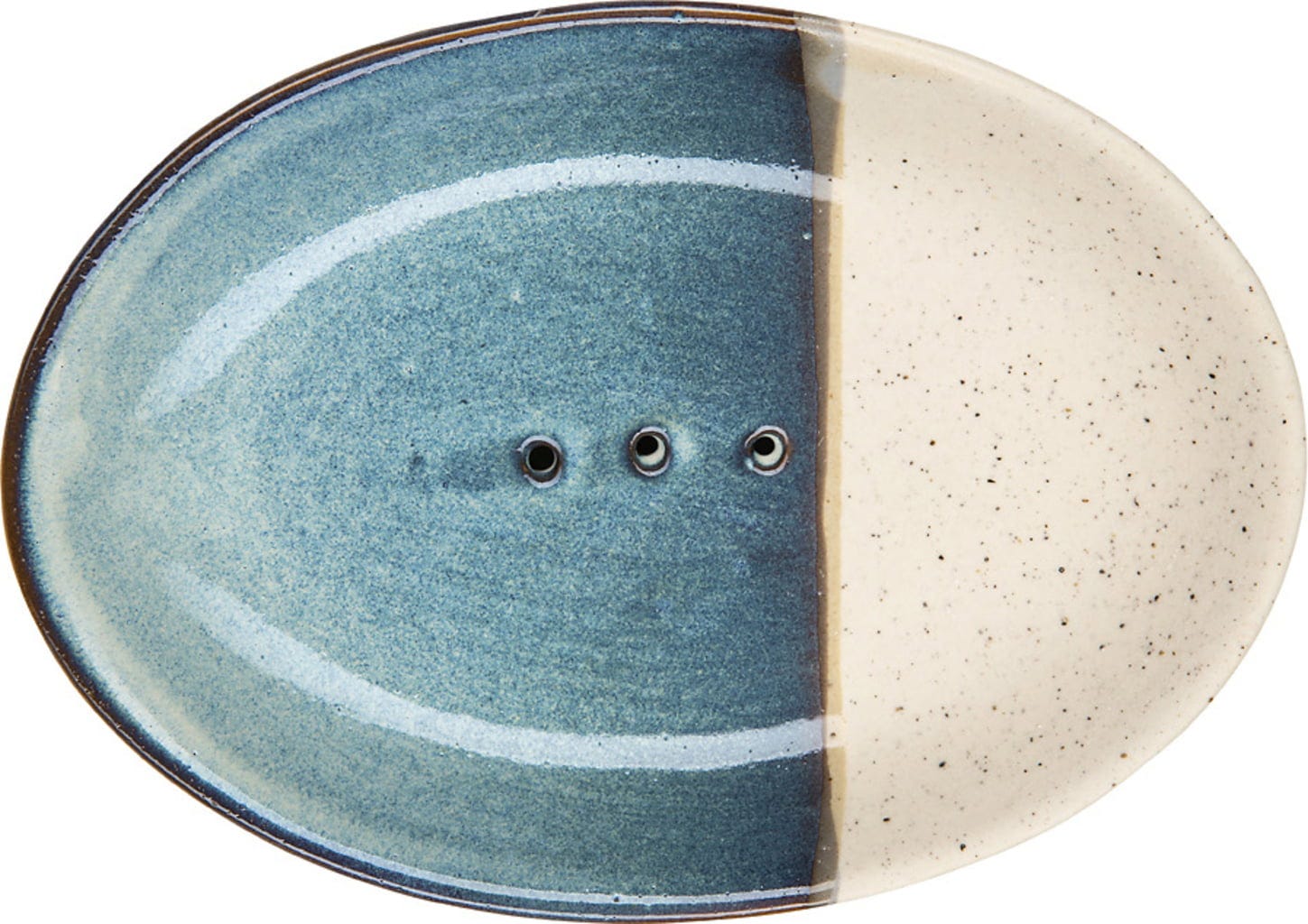Ce porte-savon de qualité en faïence émaillée brillante est un véritable élément décoratif dans la salle de bains avec son design élégant en deux couleurs différentes. La forme ovale s'accorde parfaitement avec son design épuré, tandis que les trois trous d'écoulement discrets permettent d'évacuer l'eau en excès et de bien sécher le savon.