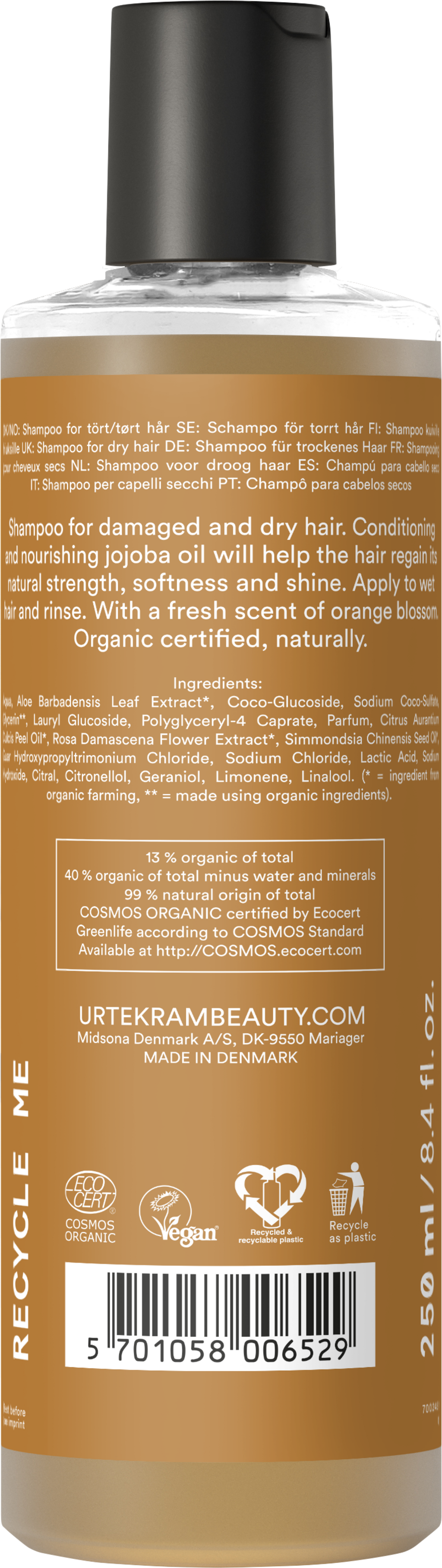 • Pour un soin optimal et un démêlage facilité, nous vous conseillons d’utiliser également un après-shampoing Urtekram.