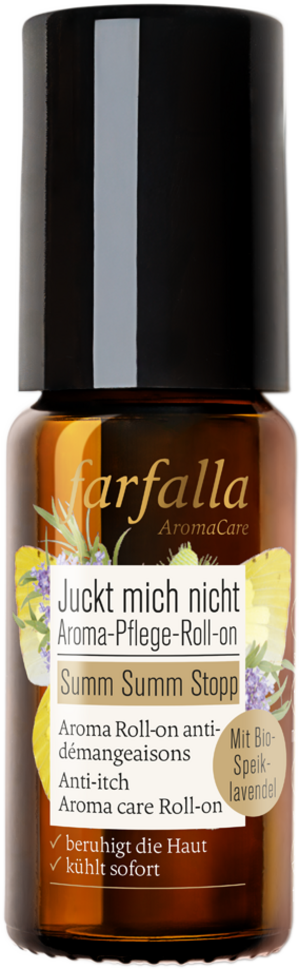 Questo pratico roll-on di farfalla supporta in modo ideale il processo di rigenerazione della pelle dopo una puntura d'insetto. Una miscela di menta piperita rinfrescante, lavanda nutriente e aloe vera idratante è ottima in caso di prurito. Il pratico formato è ideale per tutta la famiglia, oltre che da portare sempre con sé.