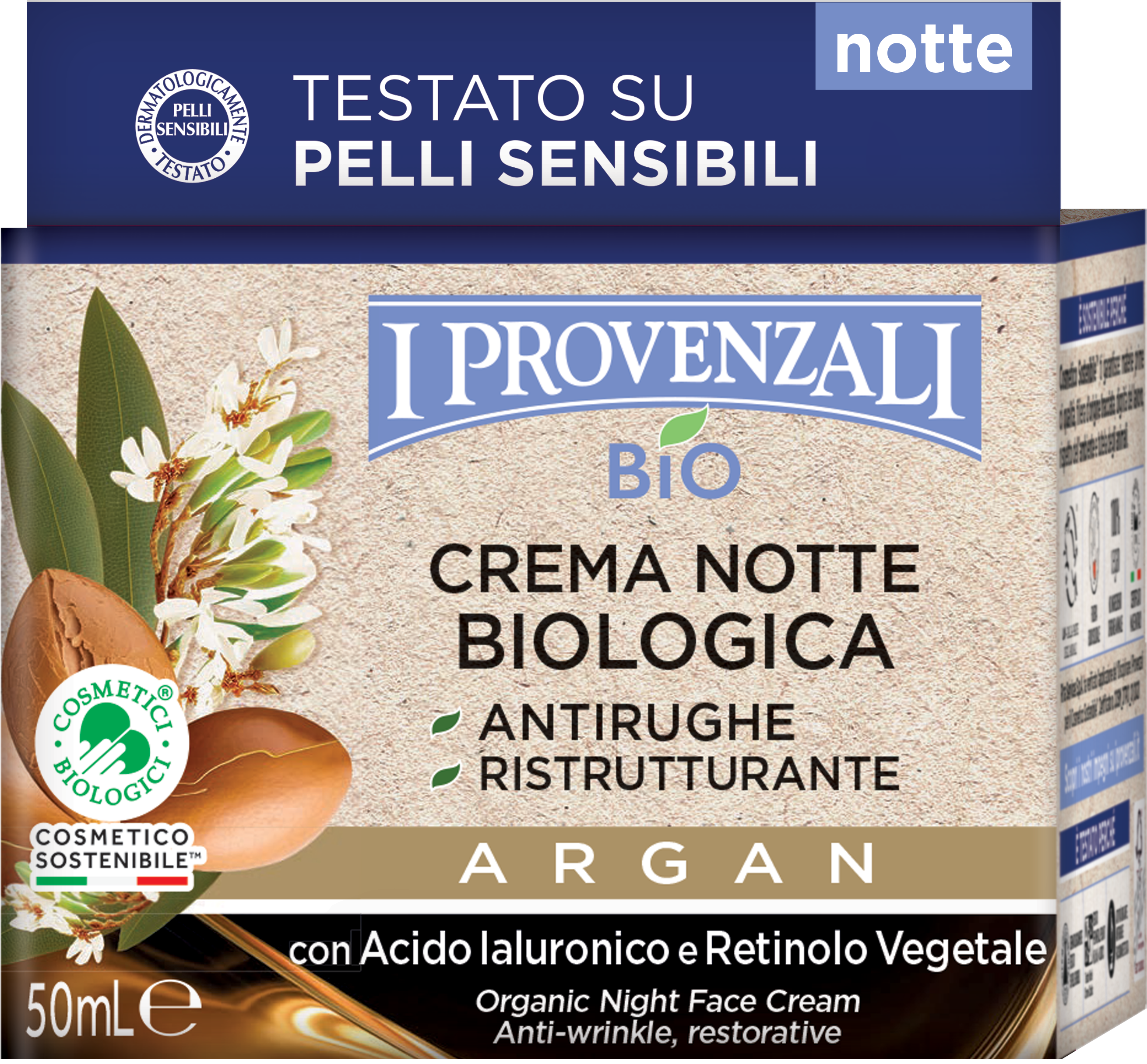 I PROVENZALI Crema Notte Antirughe Biologica Argan, 50 ml
