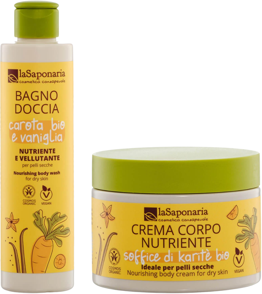 La Saponaria Kit Corpo alla Carota e Vaniglia per Pelli Secche, 400 ml