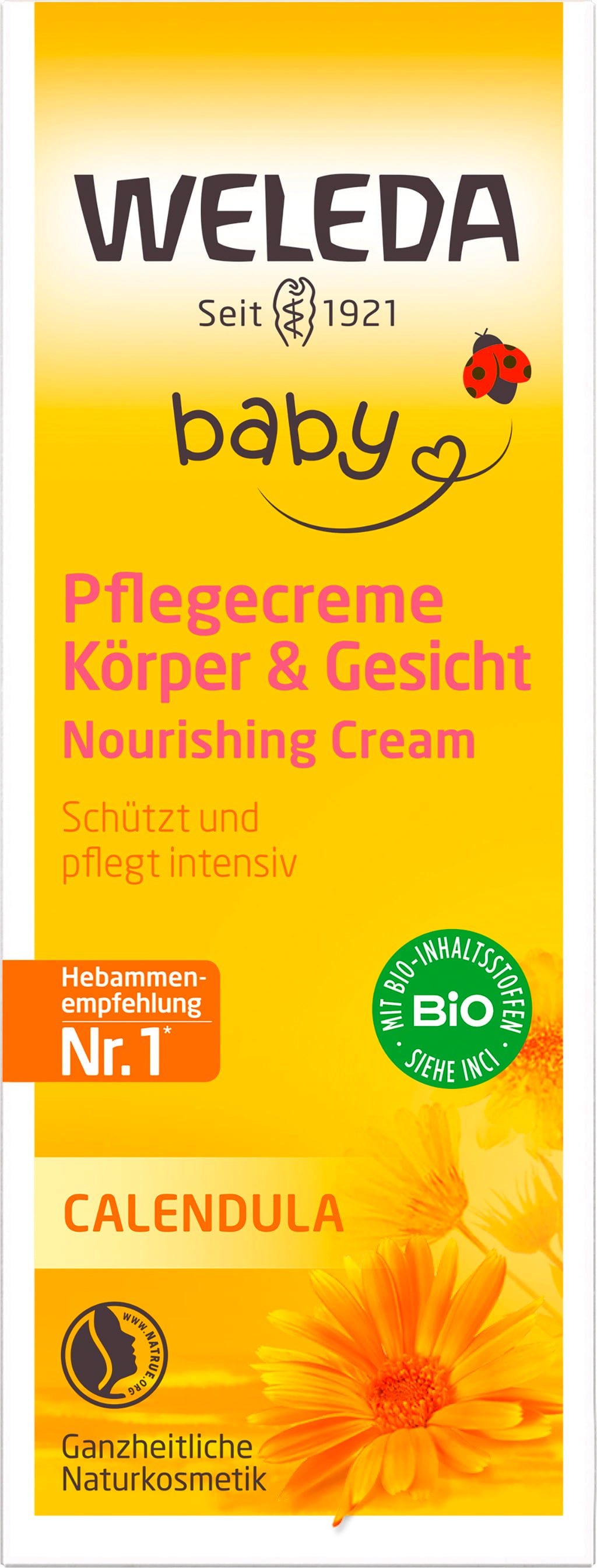 La crema Weleda alla calendula è ideale per la cura quotidiana dei neonati e dei bambini. Puri oli vegetali, cera d'api e lanolina proteggono e mantengono senza compromettere la corretta respirazione cellulare. Calendula e camomilla leniscono la pelle e donano un leggero e delicato profumo. Grazie a selezionate piante officinali e puri oli vegetali, offre protezione e nutrimento anche a pelli molto sensibili e sulla zona pannolino.