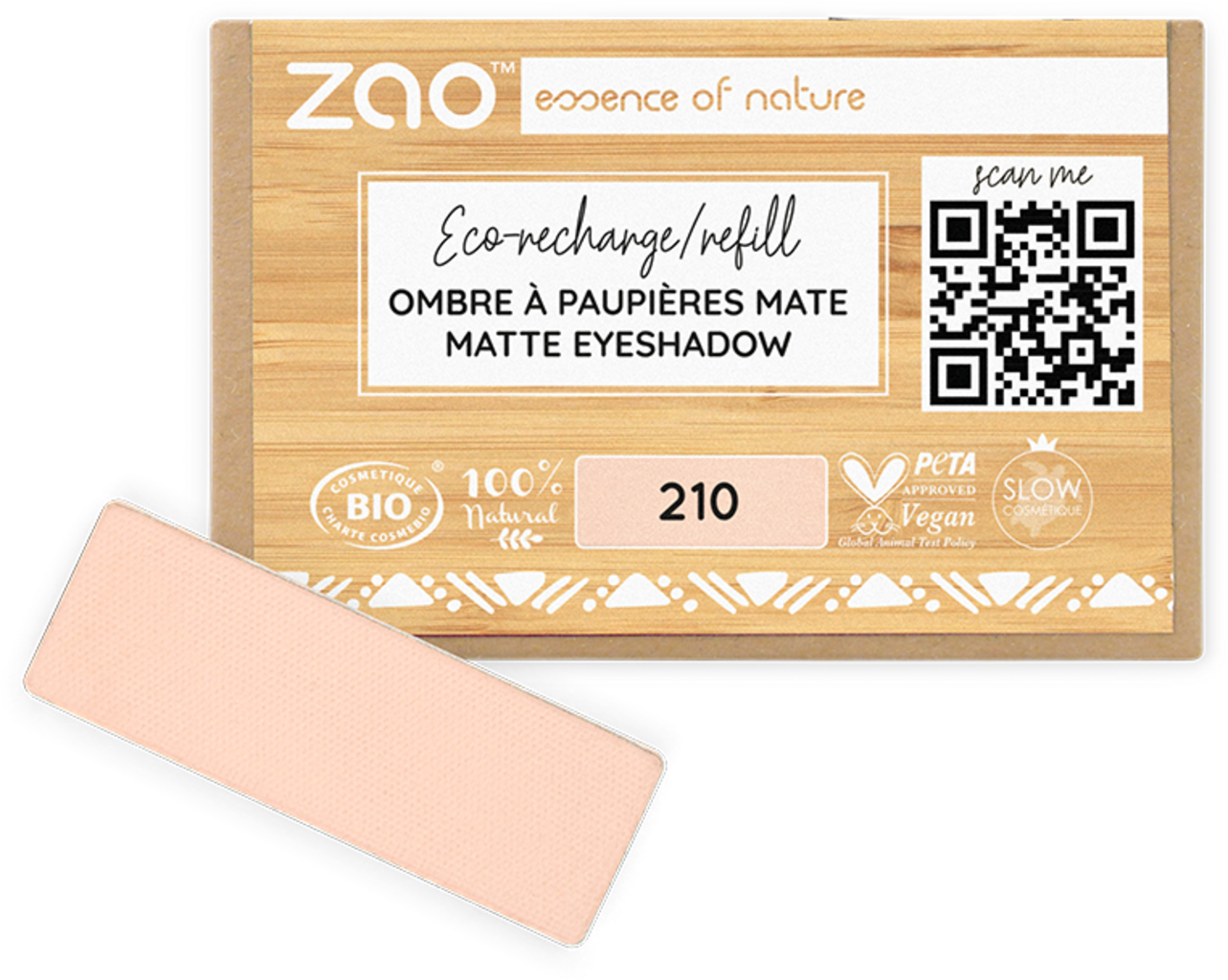 Zao Make up Refill Rectangle Eye Shadow, 210 Matt Peachy Pink (1,30 g)